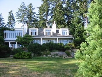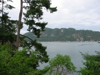 Ended up on a superb stretch called Pirate's Road which ran to the Southern end of North Pender - thrashed it to the end to relieve myself of all the blues and then just sat for a long while on a wooden bench overlooking the straight between North and South Pender, musing about the trip, it's end, and the new beginning facing me for trip number two. My view is captured below: