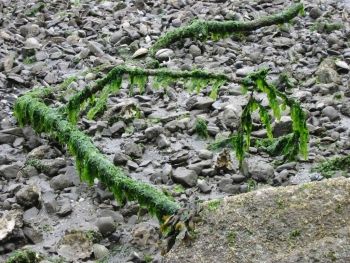 At this point I was feeling quite sad, and had decided that a little time to myself to reflect would be good. I wandered up the beach for quite a while, taking note of the cliff top houses and the general beauty of the place. The air was still and, although overcast, the sky was full of light with it's grey clouds reflected in the still waters off the beach. The rocky beach stretched for kms along the shore of South Pender and I stepped here and there amongst the stones, boulders and driftwood, lost in thought. Came across a single brightly coloured purple starfish in the inter-tidal zone which I photographed endlessly, as the amazing colour didn't seem to come out at all on my digital cam's viewscreen (Of course, when I got back I checked, and found all 5,000 photos of the creature were indeed vivid purple). Here's a random single pic from the 5,000: