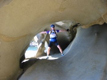 Visited various spots along Galliano's shores, including a lovely little bay named Retreat Cove, which had it's own cute island and quirky little sandstone caves shaped by wave action. Here's me standing in said cave looking like a moron (it's obligatory on hols) - I forced Tina to take this photo: